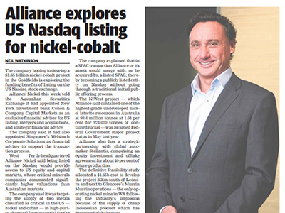 Alliance explores US Nasdaq listing for nickel-cobalt