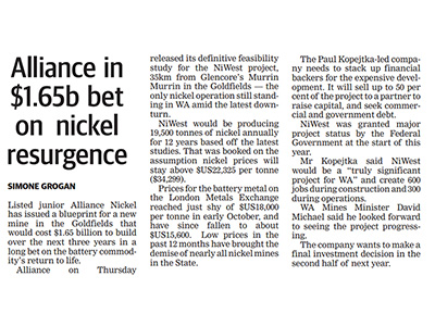 Alliance in $1.65b bet on nickel resurgence